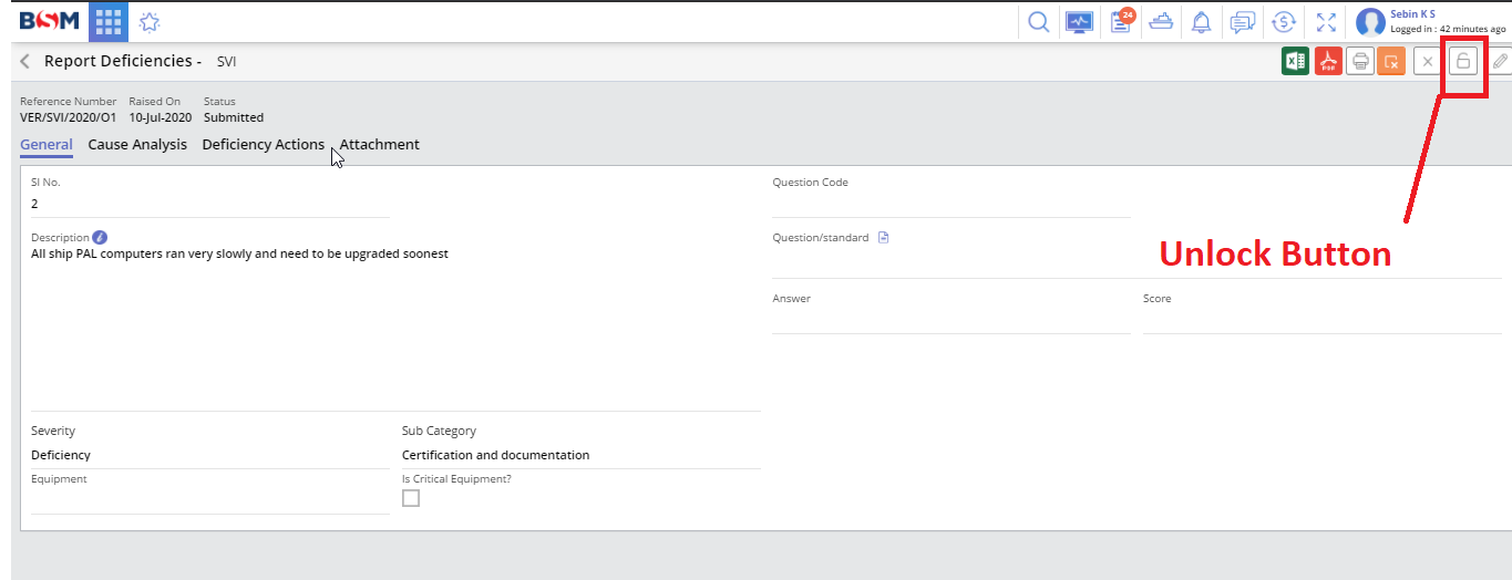5. Click on unlock button to enable add button to adding deficiencies.